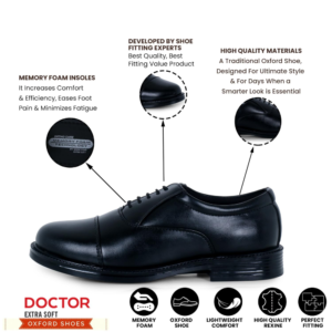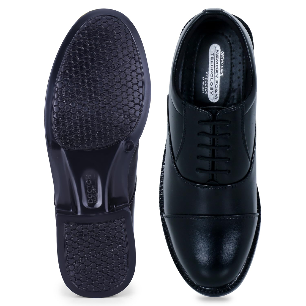 CLASSIC OXFORD SHOES WITH MEMORY FOAM INSOLE :- Extra Soft, Padded, Comfortable & Cushioned Memory Foam Foot Bed Enhances Comfort to the Feet. Doctor Extra Soft Lightweight Classic Oxford Memory Foam Shoe For Men Provides You with Better Walking Comfort & Makes Your Walking Life Easy & Effortlessly. This Black Uniform Dress Shoe Contains a Memory Foam Insole Which also Increases Comfort, Eases Foot Pain, Increases Your Efficiency, Reduces Pressure on Feet, Absorbs Heel Shocks & Minimize Fatigue