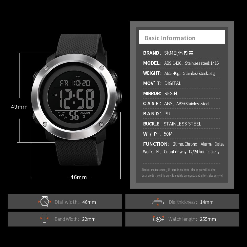 Multi-Functional Timepiece : This watch is super useful, showing time in both 12 and 24-hour formats, waking you up with an alarm, timing events with a stopwatch, and even telling you the date and day. It can also track time in two different places!