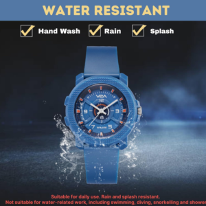 DAILY WATER RESISTANT : Water Resistance Depth is 30 M. Suitable for daily use. Rain and splash resistant. NOT suitable for water-related work, including swimming, diving, snorkelling and shower.